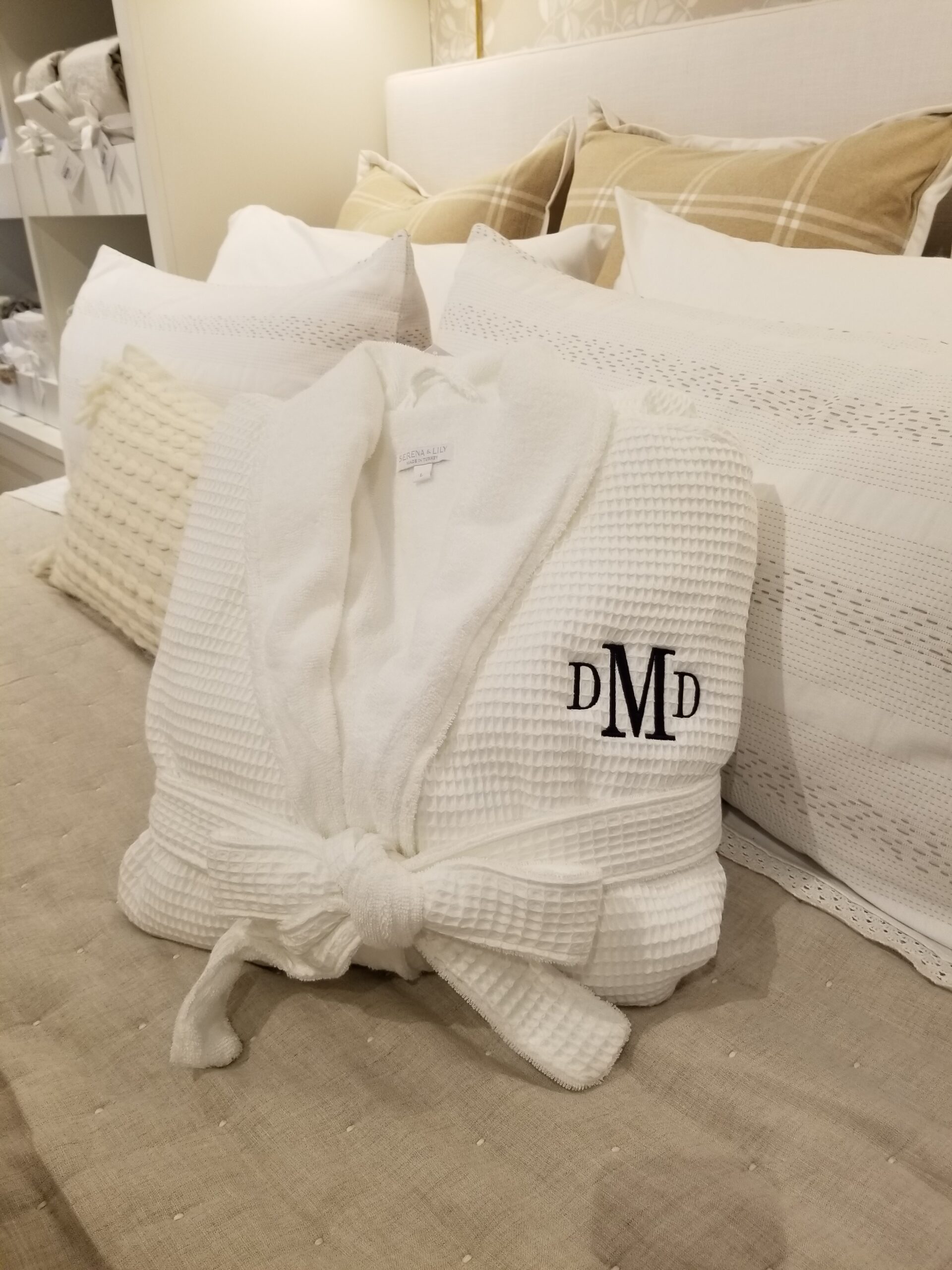 We embroider and print flat apparel such as shirts, jackets, pants, tees, towels, and motorcycle jackets, aprons, athletic jerseys, cheer uniforms, bridal wear and accessories, etc. We also provide custom embroidery for towels, heirloom blankets, prayer blankets, personalized baby gift baskets, and some athletic shoes. Personalization for the interiors of automobiles, trucks, semi-trucks, boats, planes, motorcycle seats, upholstery, golf bags, and much more. Our normal turn-around time is 10-12 business days. Business days are Monday thru Friday.